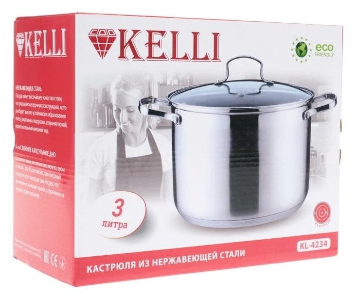 Кастрюля Kelli KL-4234 обьём 3,0л нержавейка