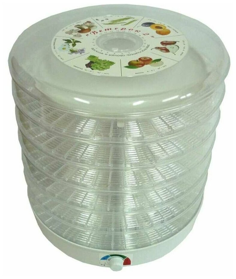 Сушилка Спектр-Прибор ЭСОФ-0.6/220 Ветерок-2 прозрачный пластик (6 поддонов, поддон для пастилы), белый/прозрачный
