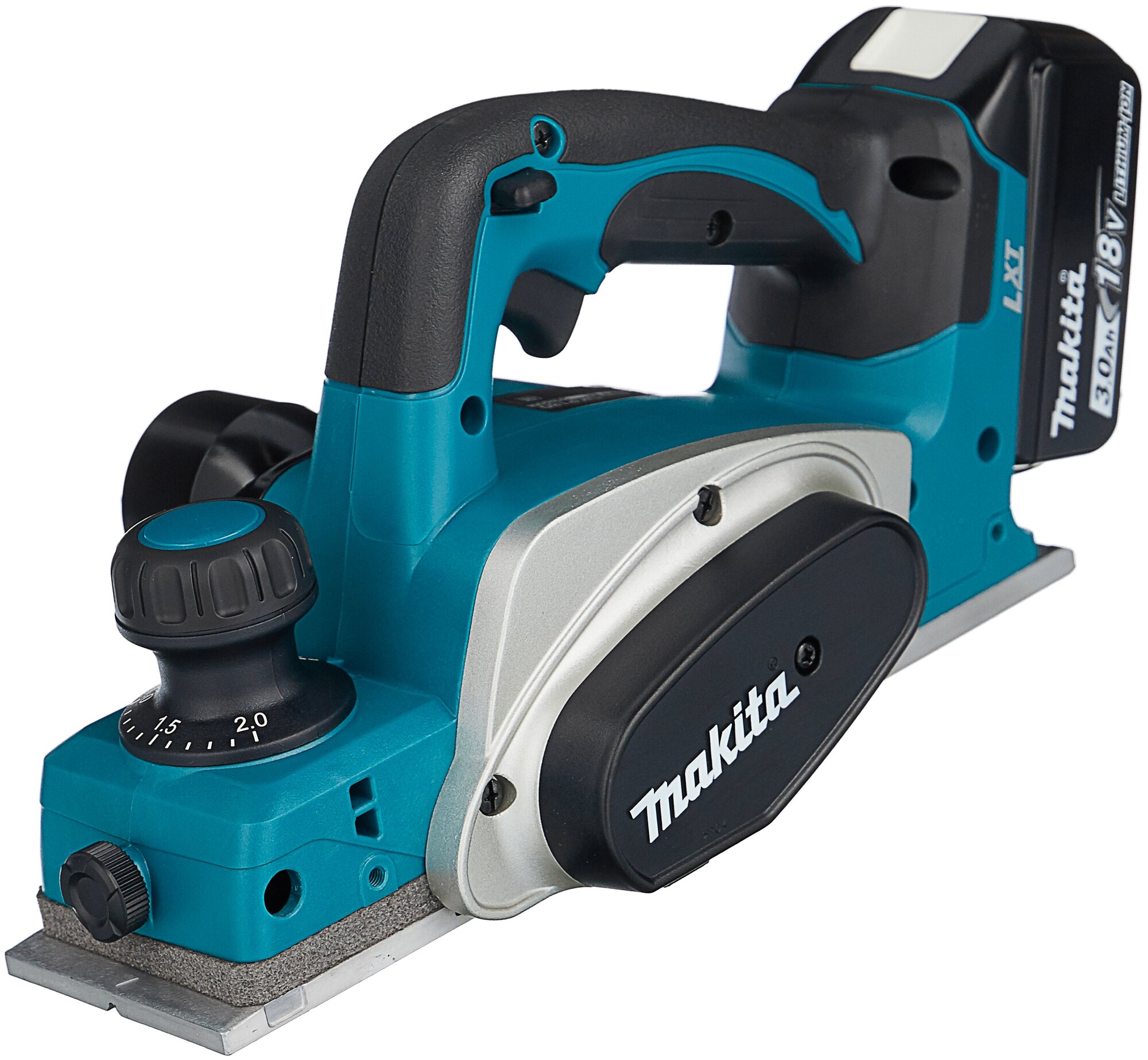 Лучшие цены. Технические характеристики: • Напряжение аккумулятора 18 В • Аккумулятор 3,0 Ач Li-ion • Число оборотов 14000 мин-1 • Ширина строгания 82 мм • Глубина строгания 2 мм • Максимальная глубина паза 9 мм • Габариты 333х157х160 мм • Вес 3,4 кг Описание: • Эргономичная рукоятка с эластомерным покрытием для обеспечения более удобной работы с инструментом и снижения усталости пользователя • Регулятор глубины строгания снабжен удобной шкалой с делениями 0,10 мм и противоскользящим эластомерным покрытием для надежного. Магазины в вашем городе.