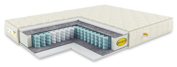 Лучшие цены. Высота 18 см. Уровень жесткости ниже среднего. Искусственный латекс 2 см, термовойлок, независимый пружинный блок "ТФК" (TFK) 256 пр./кв. м, термовойлок, искусственный латекс 2 см. Чехол из хлопкового жаккарда, простеган на холлконе и синтепоне. Максимальный вес на 1 спальное место 100 кг. Магазины в вашем городе.