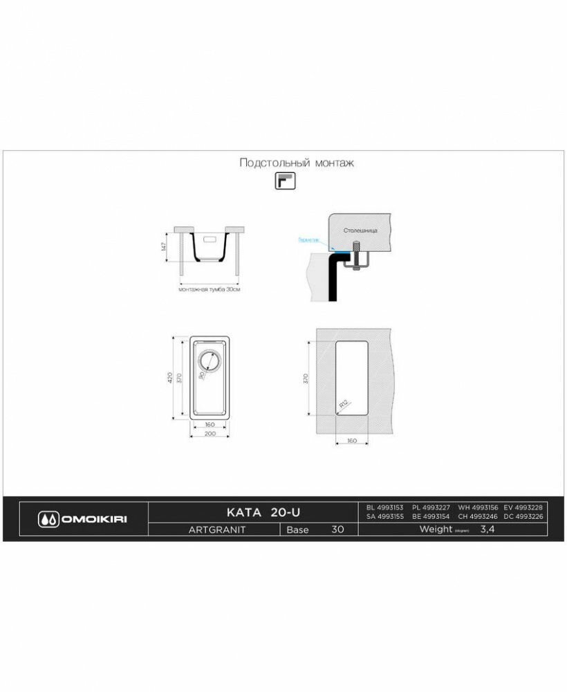 Кухонная мойка OMOIKIRI Kata 20-U-BL 20х42см искусственный гранит/черный 15 588 ₽ Подробнее