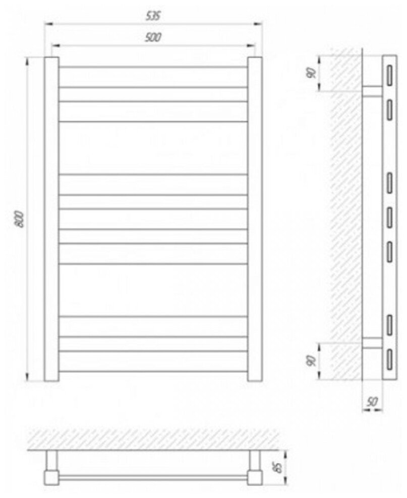 Лучшие цены. Водяной полотенцесушитель Laris Бонд П7 500х800 цвет хром имеет современный дизайн и прочную конструкцию. Изготавливается из нержавеющей стали марки AISI 304, которая обеспечивает антикоррозийный эффект, высокую теплоотдачу и длительную эксплуатацию устройства. Полотенцесушитель можно подключить как снизу, так и по диагонали и по стойке. Проверка на герметичность выполняется пробным давлением 3МПа (30 бар). Диаметры и толщина: стойка 35х35, толщина 2мм; перемычка 50х10, толщина 1,5 мм. Магазины в вашем городе.