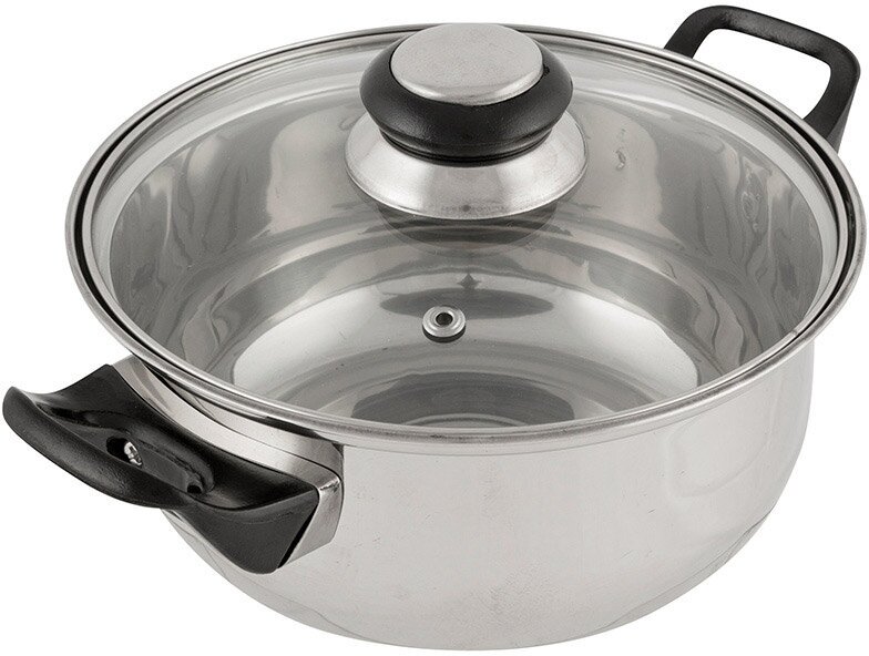 Кастрюля из нерж стали с крышкой (стекло) BAK-S-03, 2,8 л, ручки-бакелит, одинарное дно, без ТМ (985888)