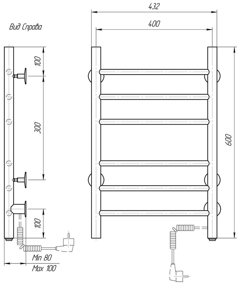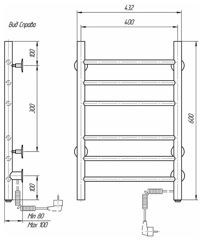 Лучшие цены. полотенцесушитель электрический лесенка, подключение электропровод с вилкой справа, секций 6, мощность 52 Вт, нагрев до 60°C, включение кнопка. Магазины в вашем городе.