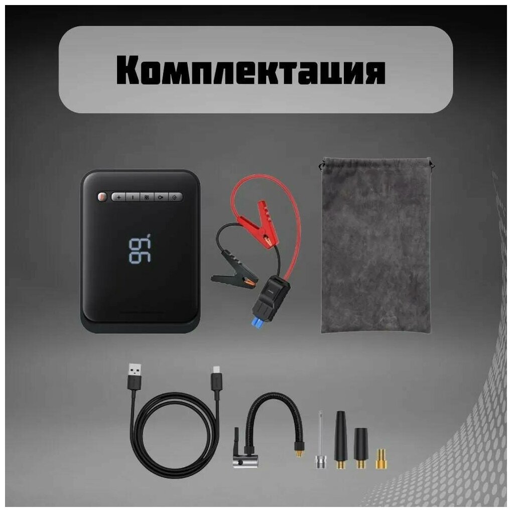 Лучшие цены. Baseus 2 в 1 Jump Starter Booster (1000A / 500A) / Шинный компрессор 150 PSI Вам нужно надежное пусковое устройство, которое сделает вас независимым от специалистов техпомощи и самостоятельно заведет автомобиль в мороз? Это устройство с отличными параметрами и совмещает в себе сразу несколько девайсов. Он достаточно сильный, чтобы позволить вам завести автомобиль в экстренной ситуации до 50 раз после полной разрядки/зарядки. Магазины в вашем городе.