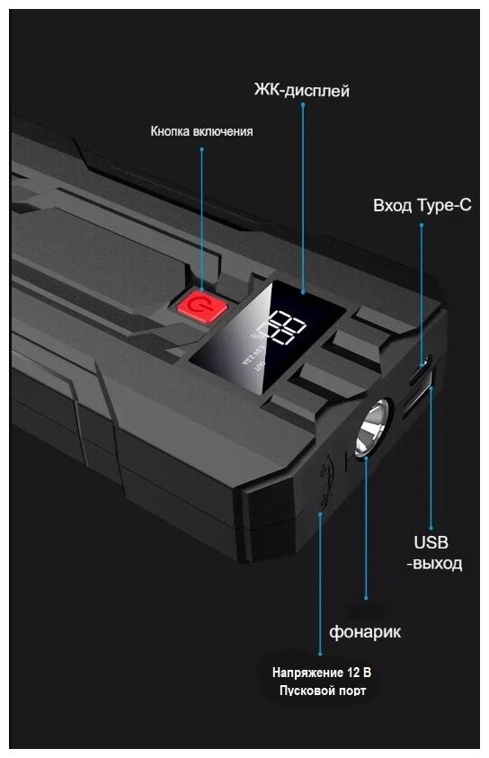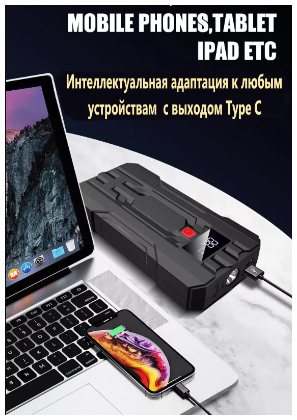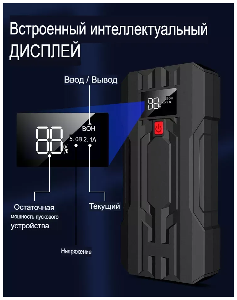 Пуско-зарядные устройства Зарядно пусковое устройство Геракл 10.000 mAh, портативная аккумулятор зарядка c дисплеем и фонариком / Power Bank/ ПЗУ/ Пускач