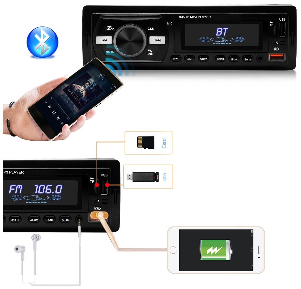 Автомагнитолы Автомагнитола, автомагнитола с блютуз, магнитола c блютуз, магнитола в машину, радио, USB на передней панели, bluetooth, AUX, пульт ДУ