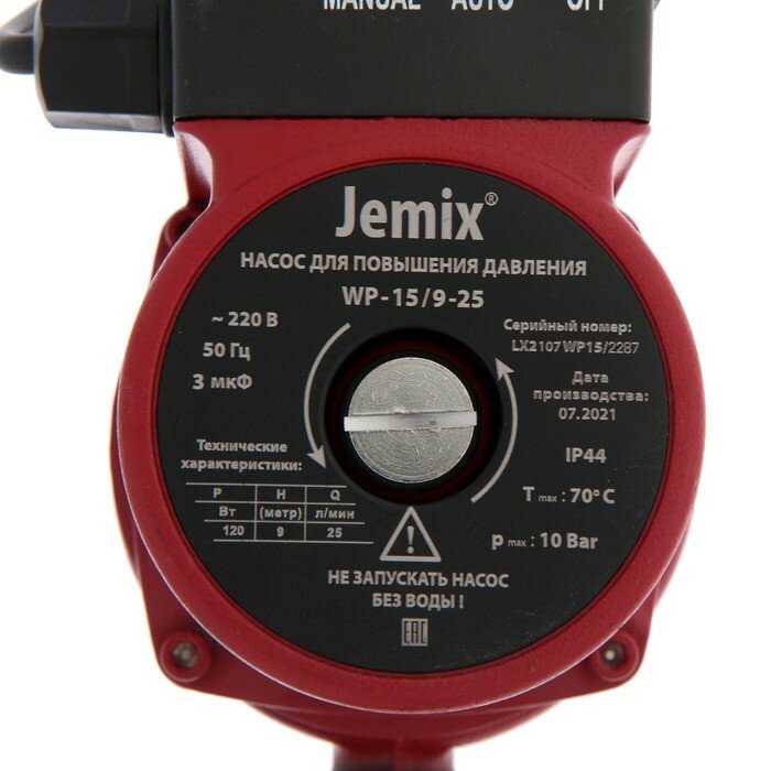 Насос повышающий давление с автоматическим включением JEMIX ЦПН-15/9-25 , AUTO. Мокрый ротор, мощность 120 Вт.