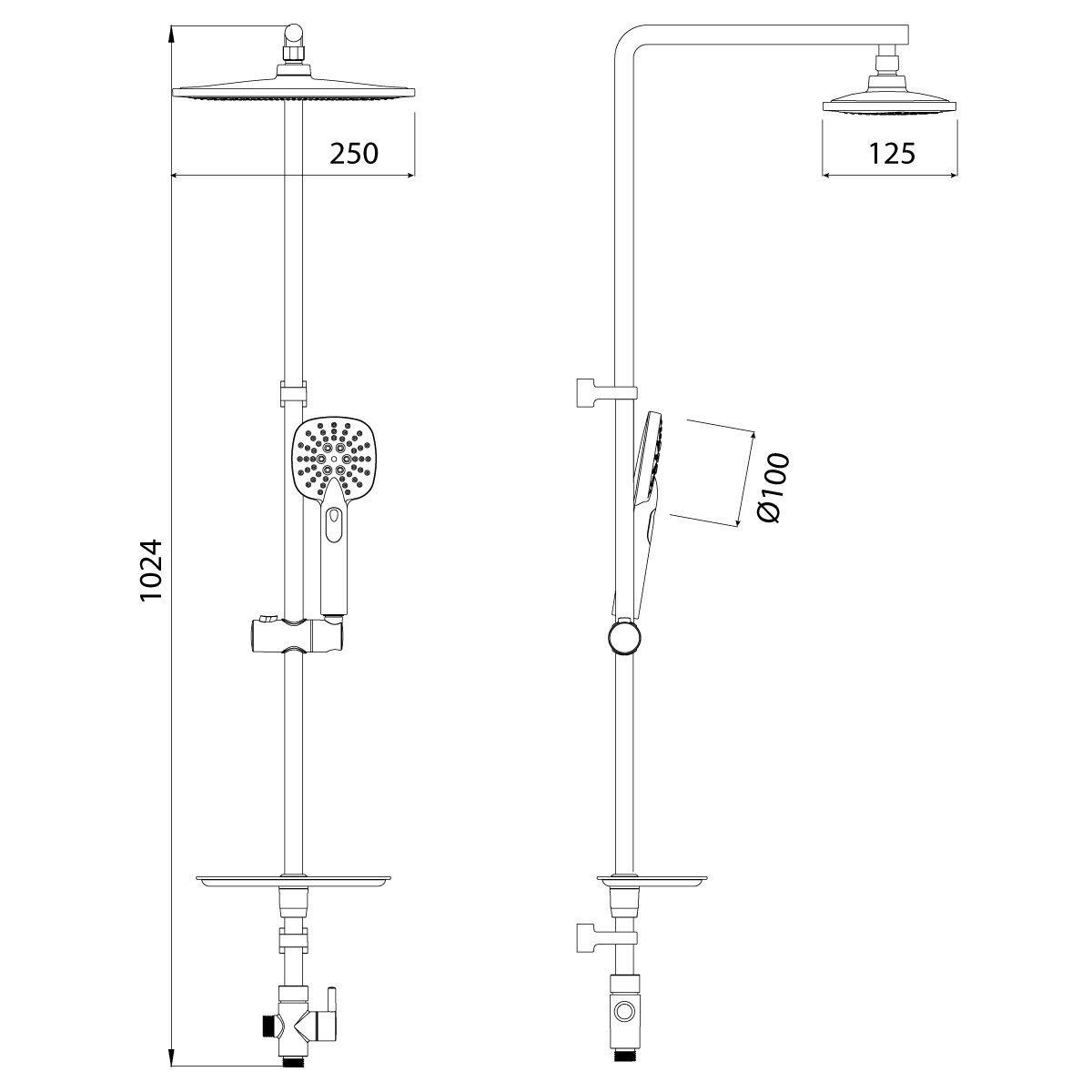| Комплектация | ручной душ (душевая лейка) / верхний душ (тропический) / стойка / штанга / душевой шланг / крепление ручного душа / мыльница |