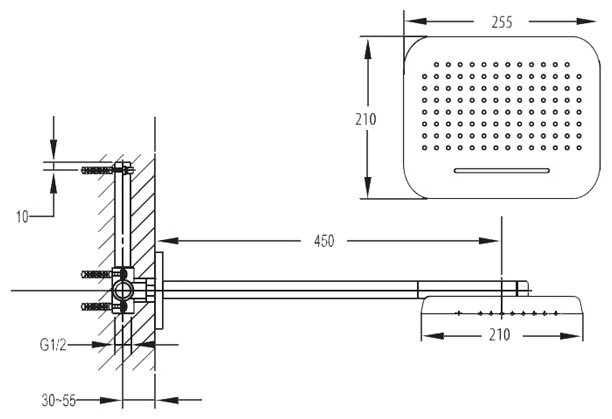 | Размеры верхнего душа | 255 мм (255х210 мм) |