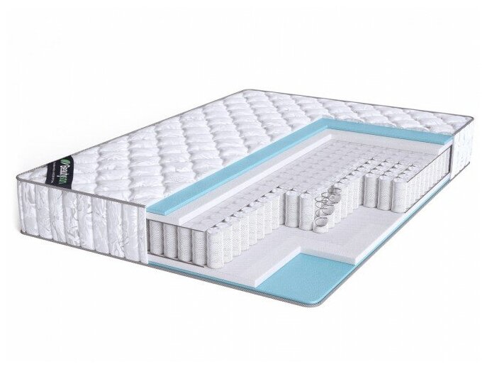 Лучшие цены. Высота 24 см. Уровень жесткости средний. Пенополиуретан Airfoam 1,5 см, холлофайбер 3 см, спанбонд, независимый пружинный блок "ТФК" (TFK) S600 256 пр./кв. м 14 см, спанбонд, холлофайбер 3 см, пенополиуретан Airfoam 1,5 см. Чехол из трикотажной ткани, простеган на синтепоне и спанбонде. Максимальный вес на 1 спальное место 130 кг. Магазины в вашем городе.