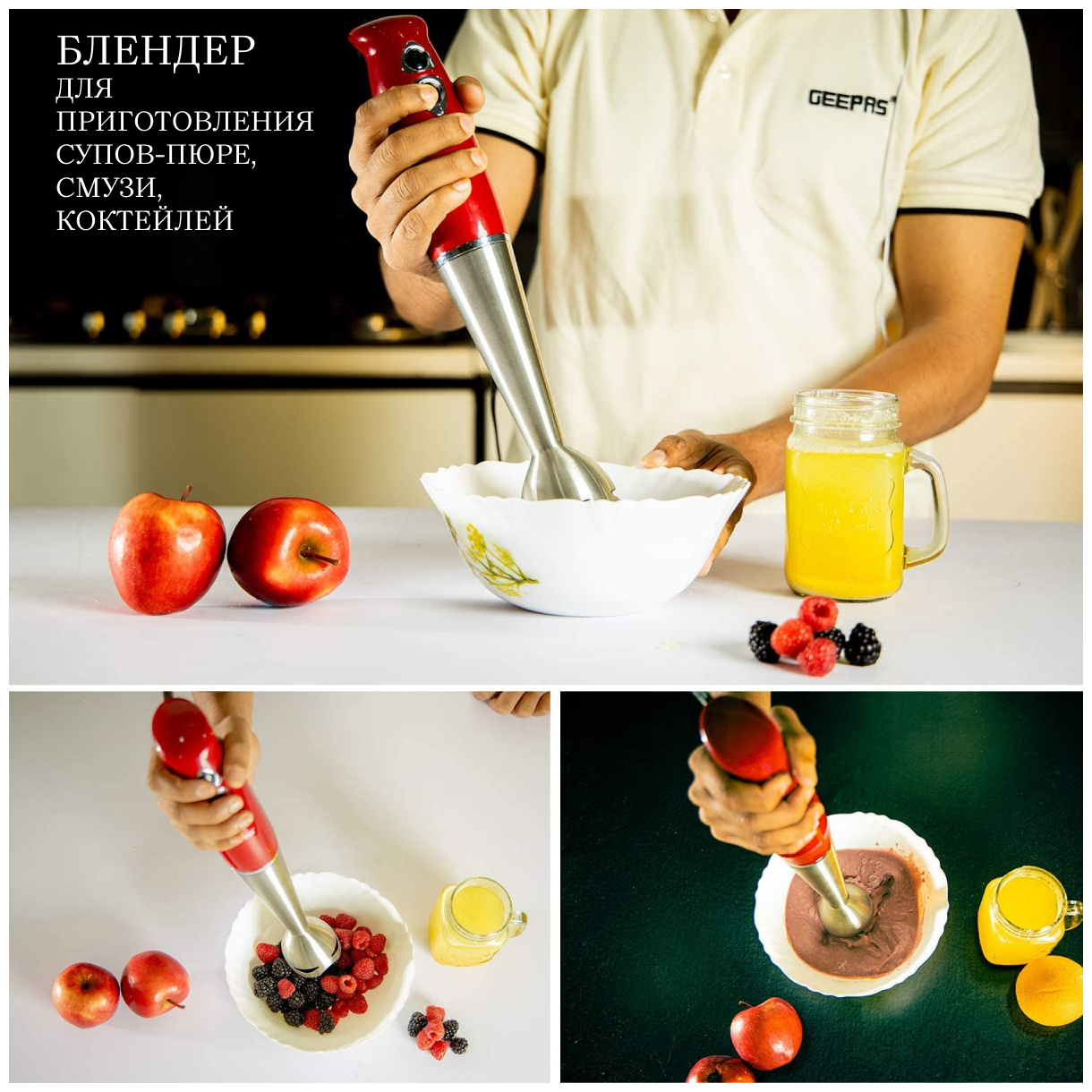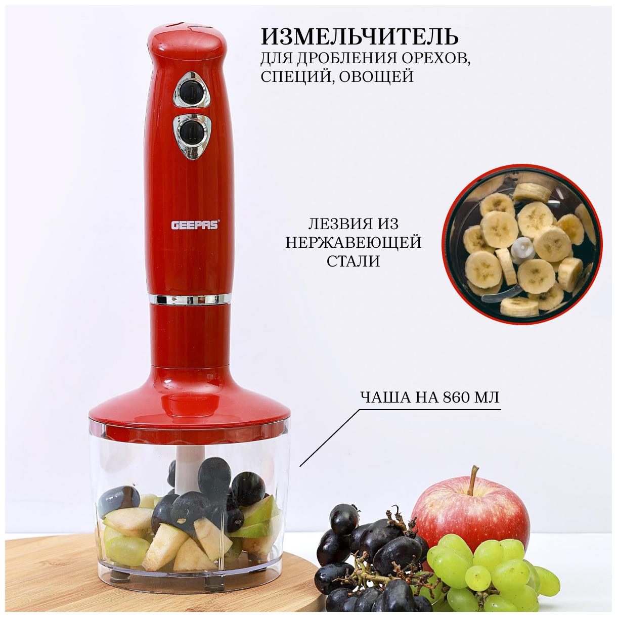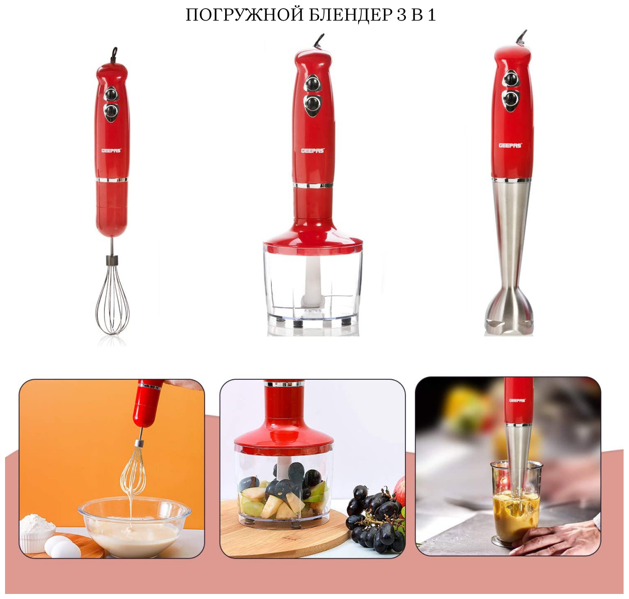 Миксеры и блендеры Блендер погружной 3 в 1 Geepas GHB6136 400 Вт, красный