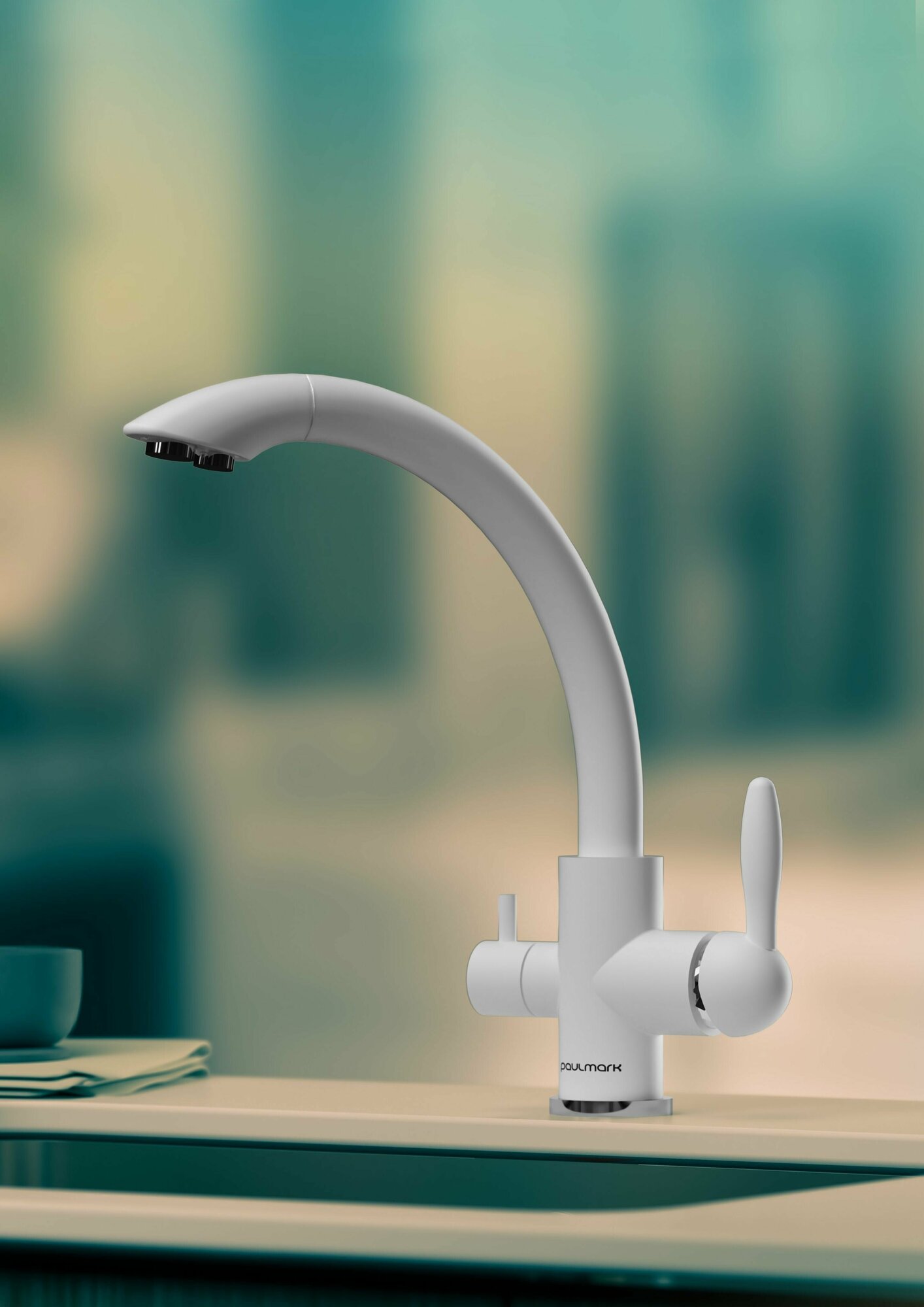 Смеситель для кухни Paulmark ESSEN, белый матовый, две воды, Es213001-431