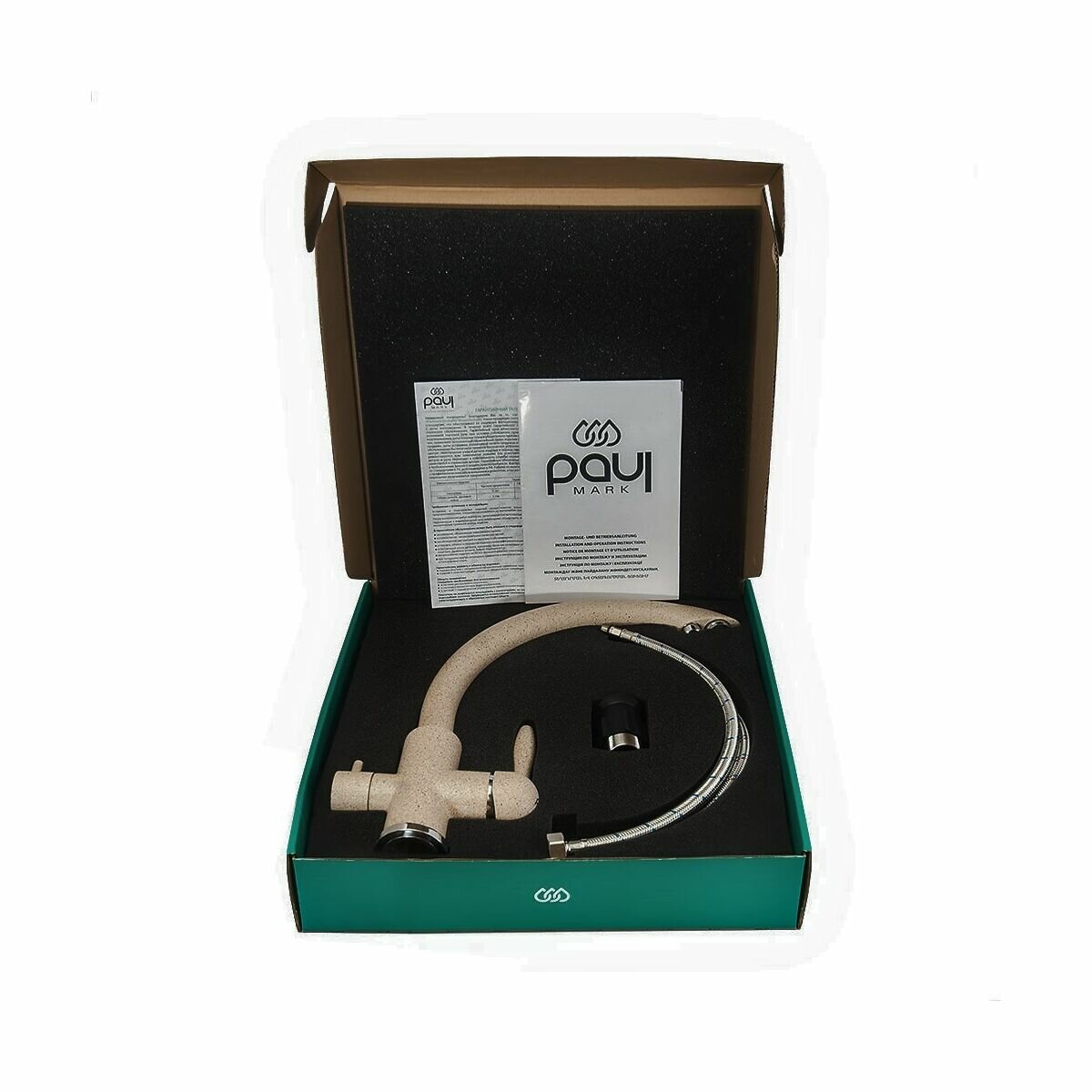 Смеситель для кухни Paulmark ESSEN, подключение к фильтру питьевой воды с отдельным каналом и выпуском, поворотный излив, латунь, на мойку / столешницу, бежевый, Es213001-328