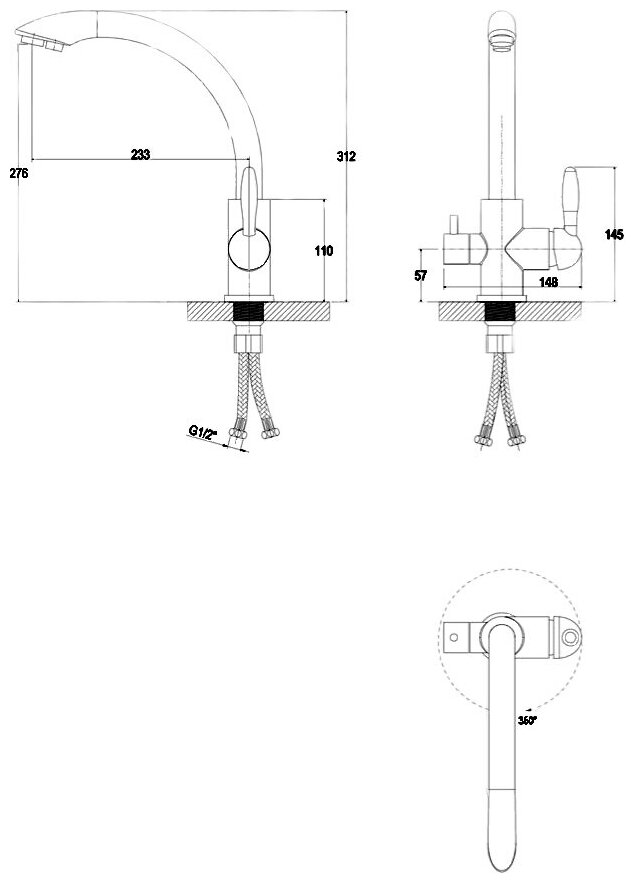 | Подвод воды | шланги / 450 мм / G 1/2" |