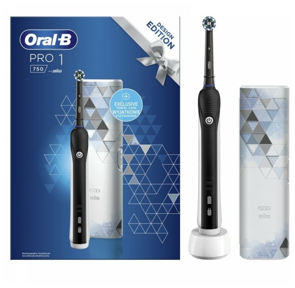 Электрическая зубная щетка Oral-B PRO 750 + футляр, черный