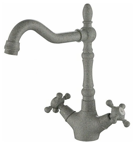 Лучшие цены. Двухвентильный смеситель для кухонной мойки Paulmark Essen Es226001-310. Изысканный дизайн изделия дополнит большинство кухонь в классическом или ретро стиле. Керамические кран-буксы (угол поворота 180 градусов) с ресурсом открываний/закрываний в 300 000 раз обеспечивают точную настройку температуры и напора воды. Характеристики: - Цвет: серый. - Излив с поворотом на 360 градусов. - Изготовлен из высококачественной латуни с многослойным и стойким к истиранию покрытием. Магазины в вашем городе.