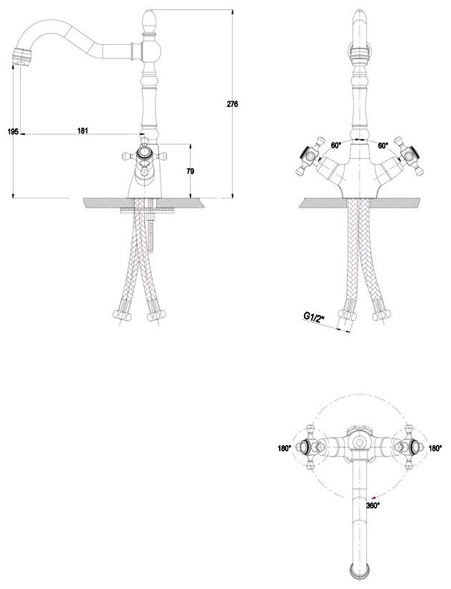 | Подвод воды | шланги / 400 мм / G 1/2" |