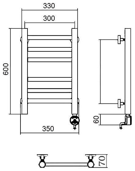 Полотенцесушитель электрический Прямая групповая 600х300 мм, 6 перекладин, правое подключение.
