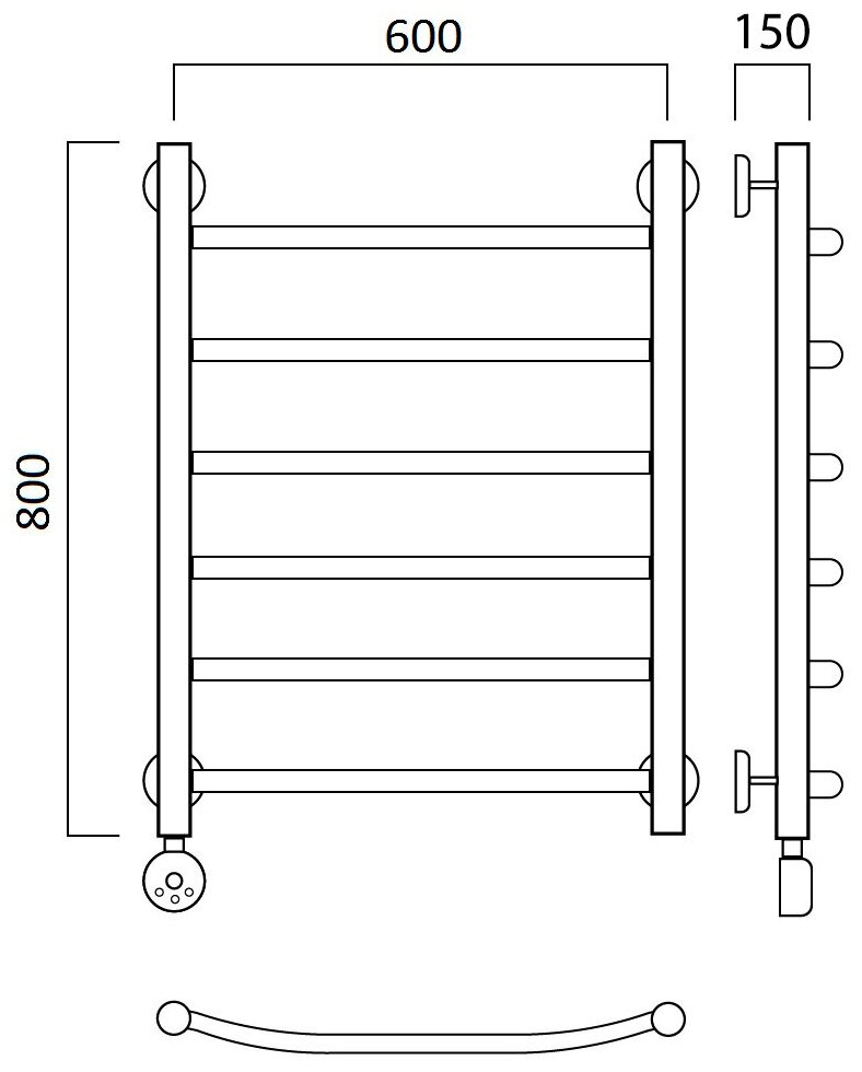 Полотенцесушители Электрический полотенцесушитель Акванерж дуга 800x600 левый