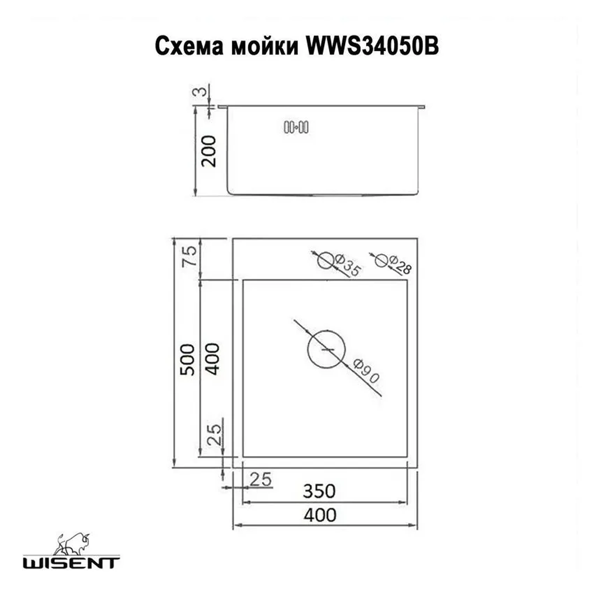 Кухонные мойки Комплект кухонная мойка из нержавеющей стали WISENT 4050B с PVD покрытием (40х50см) с металлическим коландером
