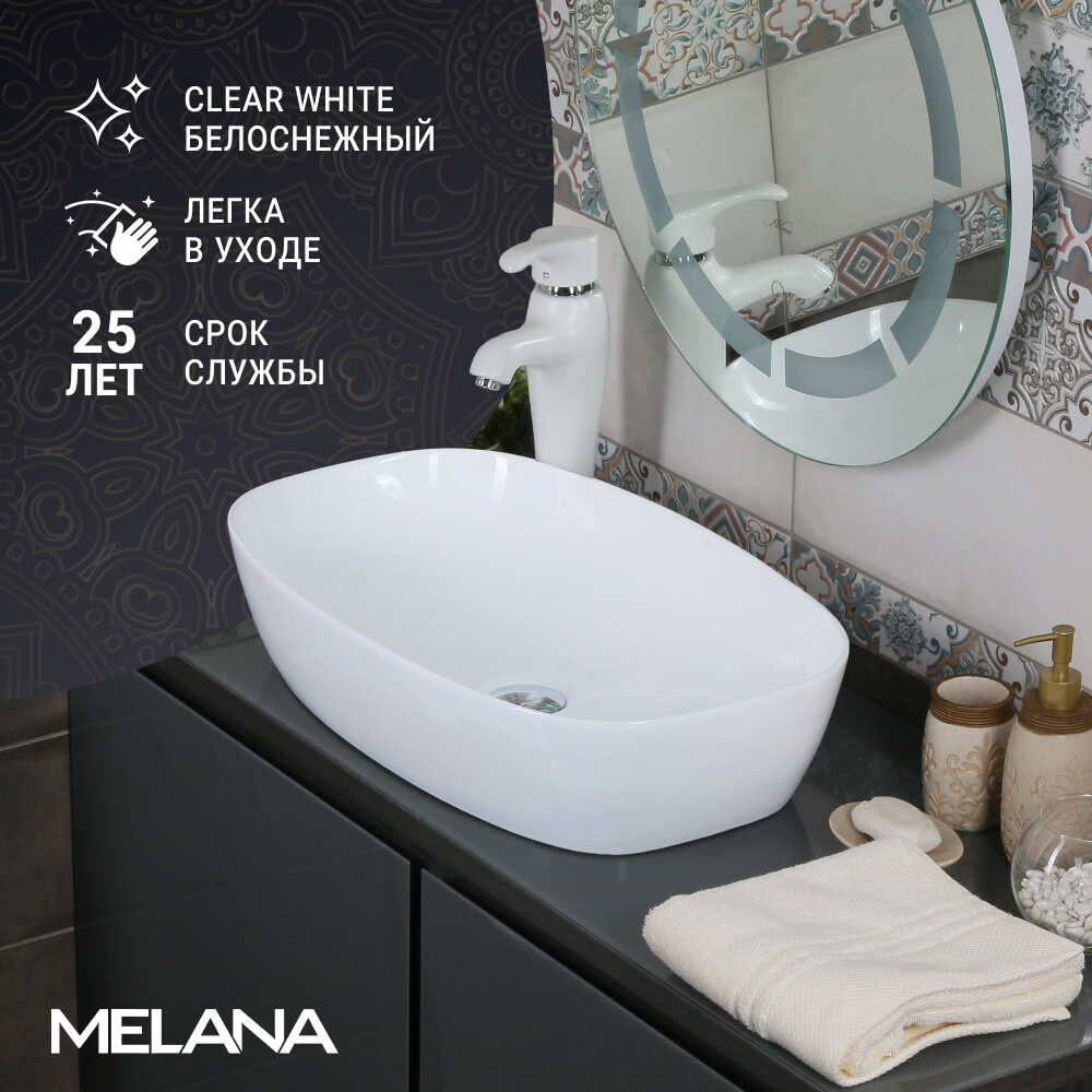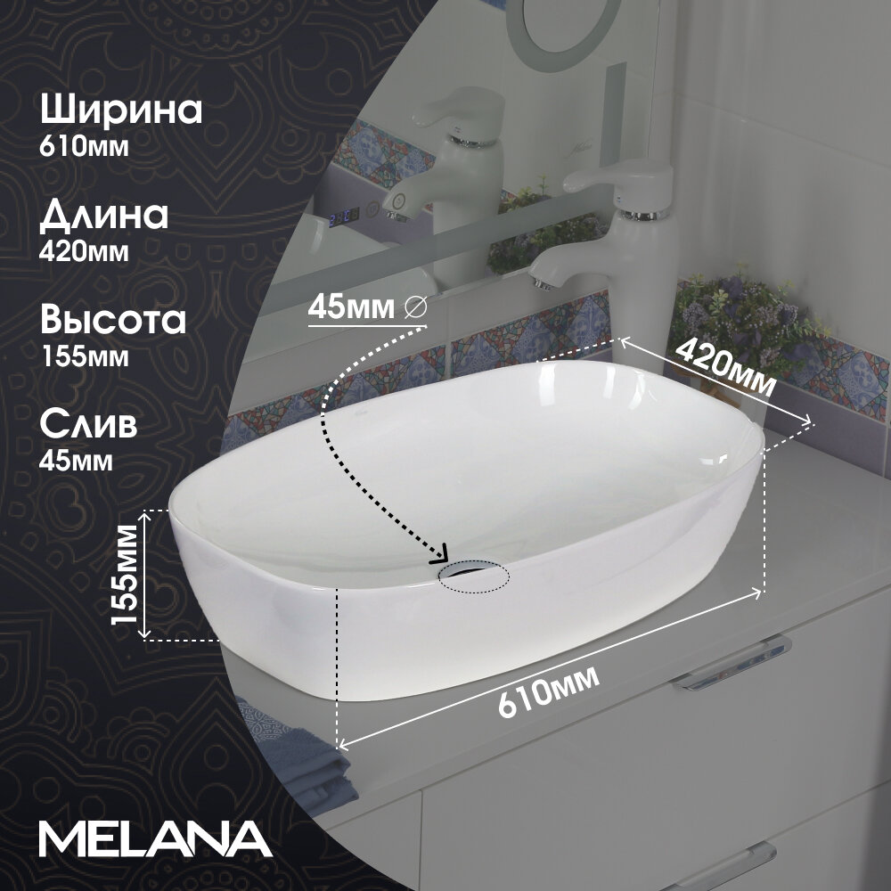 Раковина Melana MLN-A500A, накладная, белая, прямоугольная, фаянсовая, без перелива 9 937 ₽ Подробнее