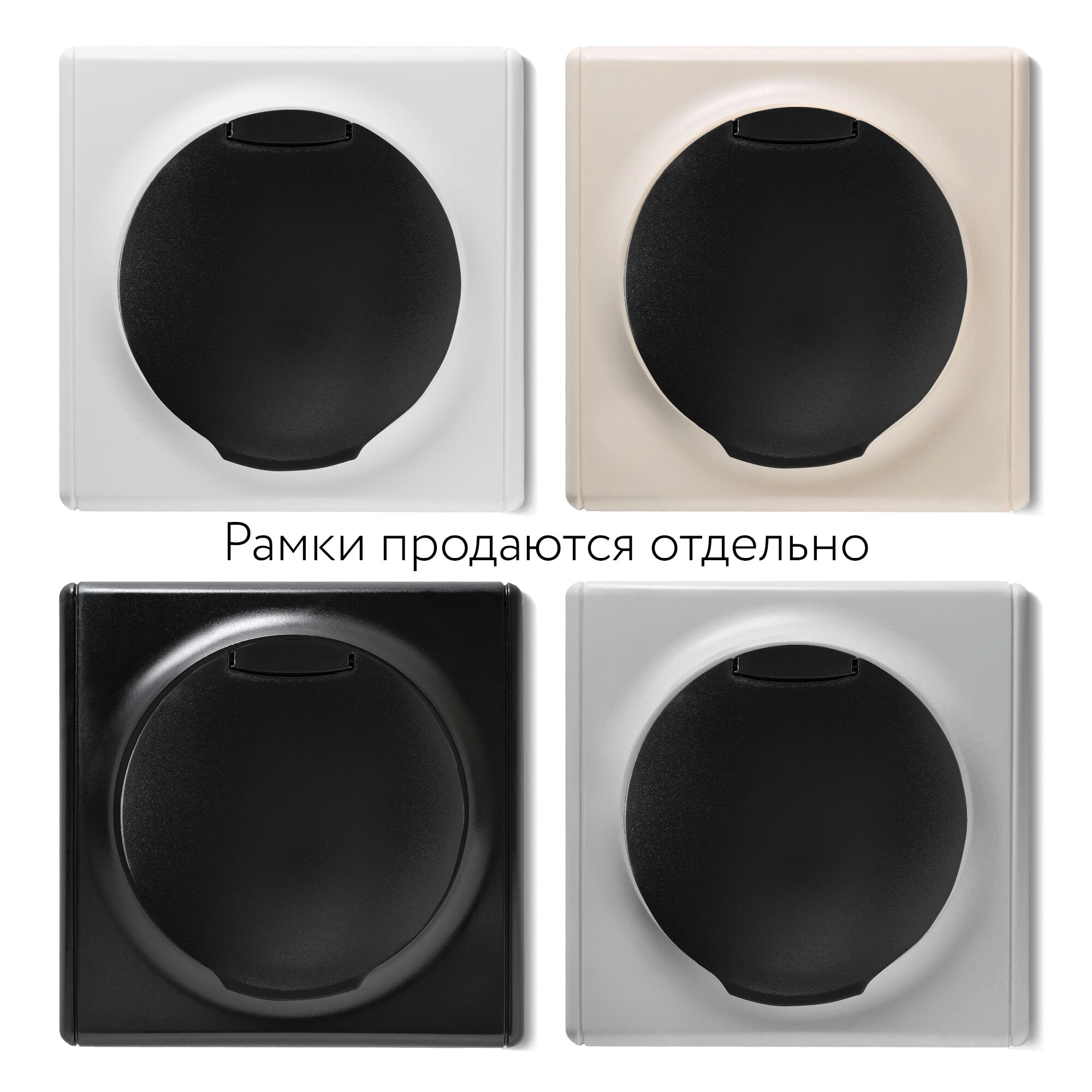 Рамки для розеток и выключателей Розетка OneKeyElectro с крышкой, с заземлением, винтовые контакты, цвет черный