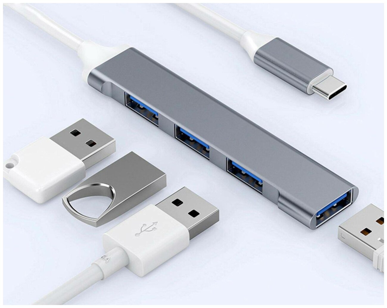 Картридеры и USB-хабы USB разветвитель, hub 3.0/USB-type C, (4 порта USB для подключения).Разъем кабеля: type C.