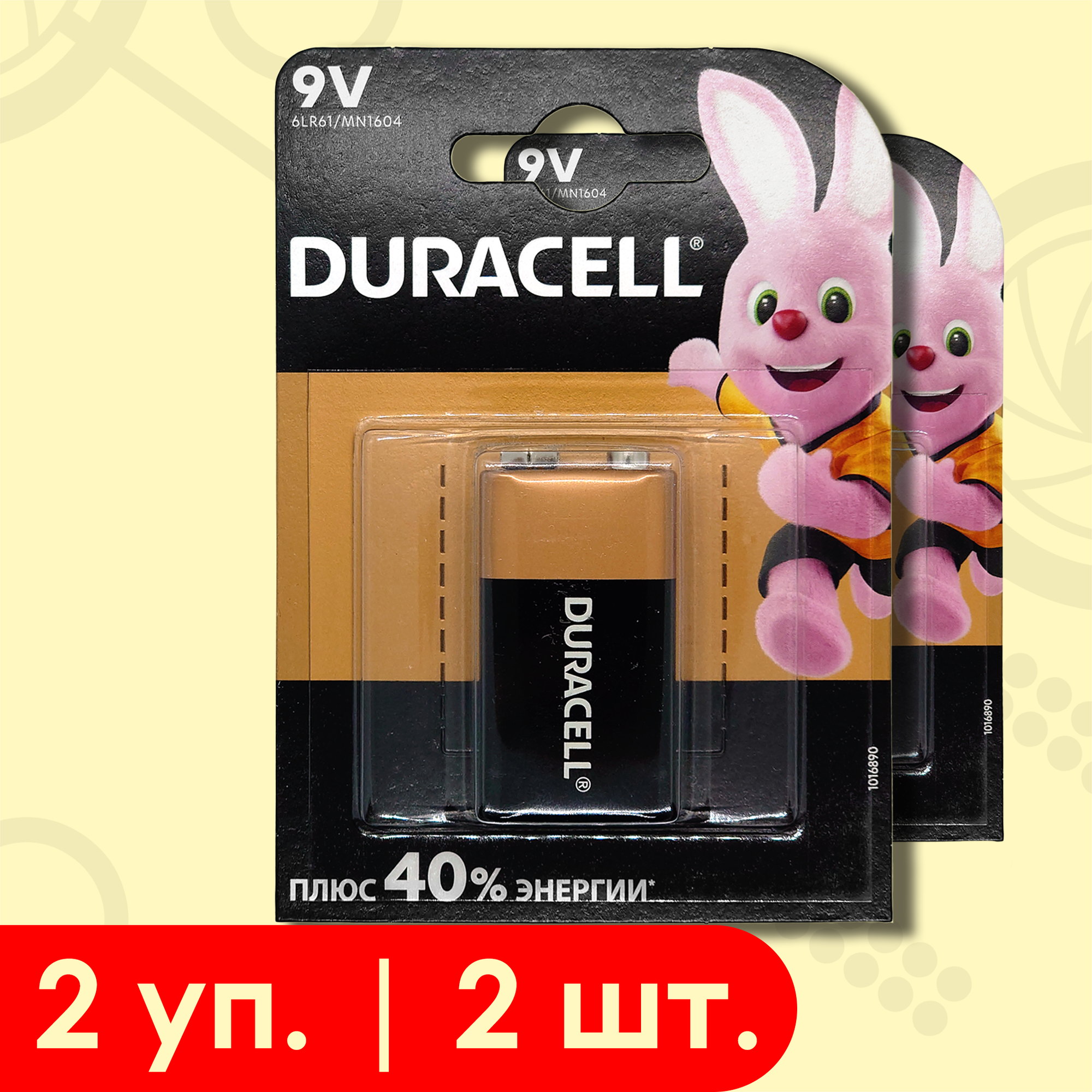 Комплект Duracell 9v (Крона) 2 шт.