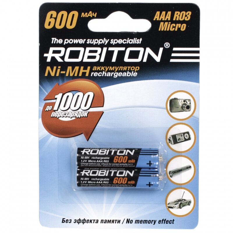 Лучшие цены. Аккумуляторы емкостью 600мАч размера ААА/НR03 Действительное соответствие заявленной емкости Перезаряжаемы до 1000 раз Без эффекта памяти Подходят для быстрого заряда 2 штуки на блистере. Магазины в вашем городе.