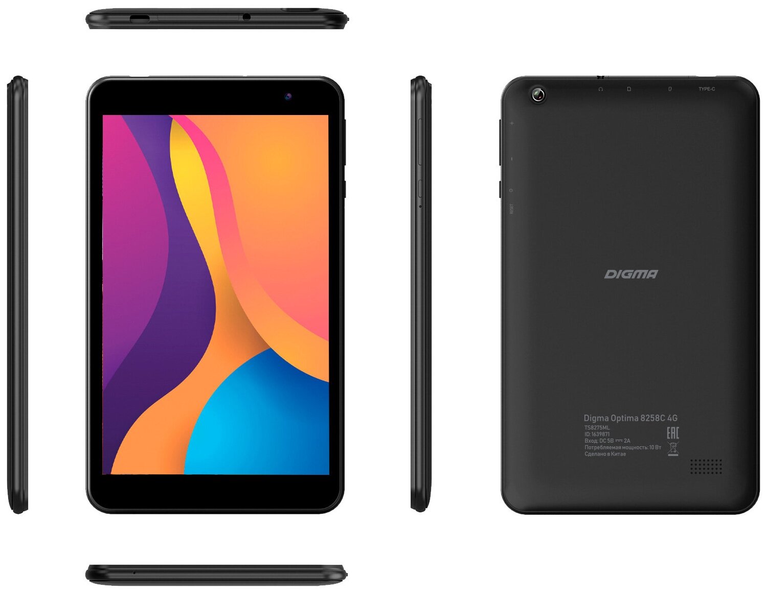Лучшие цены. Планшет Digma Optima 8258C 4G черный, процессор MTK MTK8765, оперативная память 2Gb, встроенная память 32Gb, диагональ экрана 8", IPS, 1280x800, поддержка 3G/4G, WiFi, BT, камера 2Mpix/2Mpix, GPS, Android 11.0 Go, поддержка microSD до 64Gb, 4000mAh. Магазины в вашем городе.