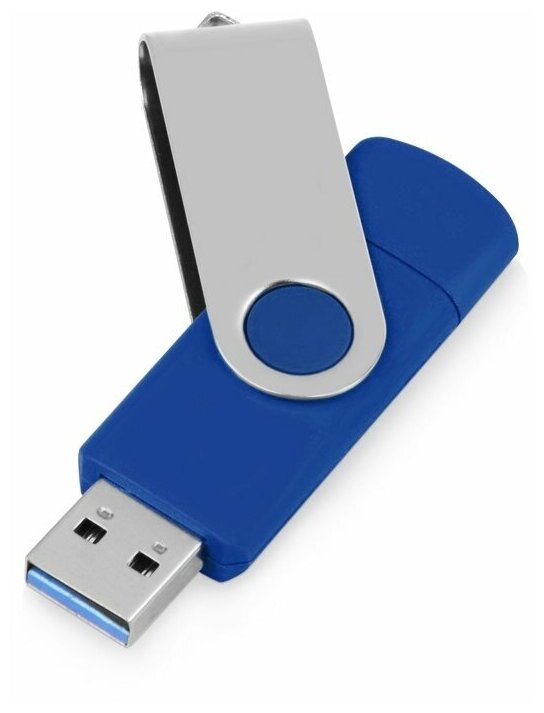 USB-флешки USB/USB Type-C флешка на 16 Гб "Квебек C" с покрытием soft-touch, синяя