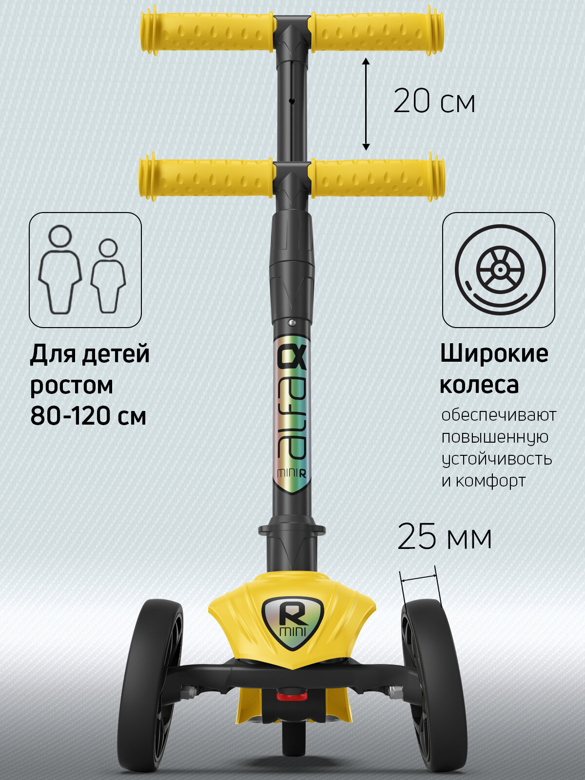 Самокат детский трехколесный BuggyBoom Alfa Mini R, нежно лимонный