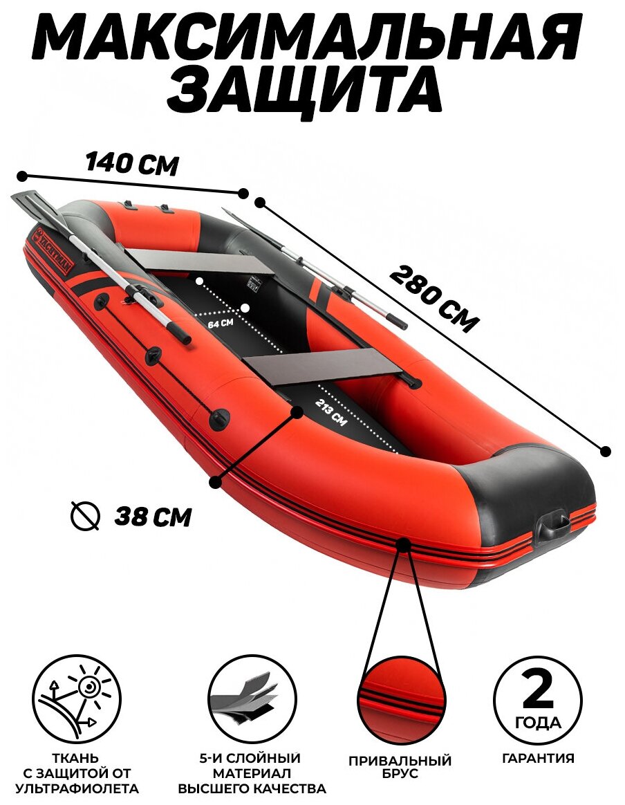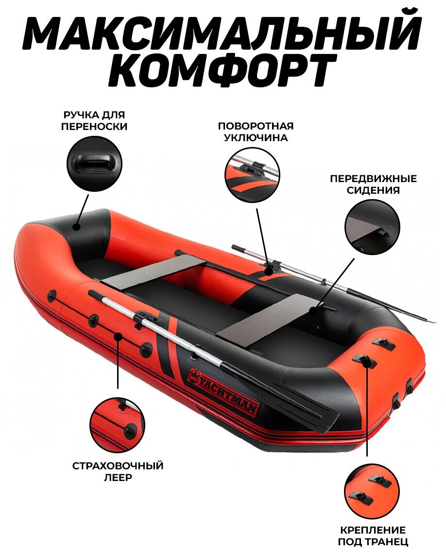 Надувные лодки Надувная лодка пвх YACHTMAN 280 M с усилением красный-черный