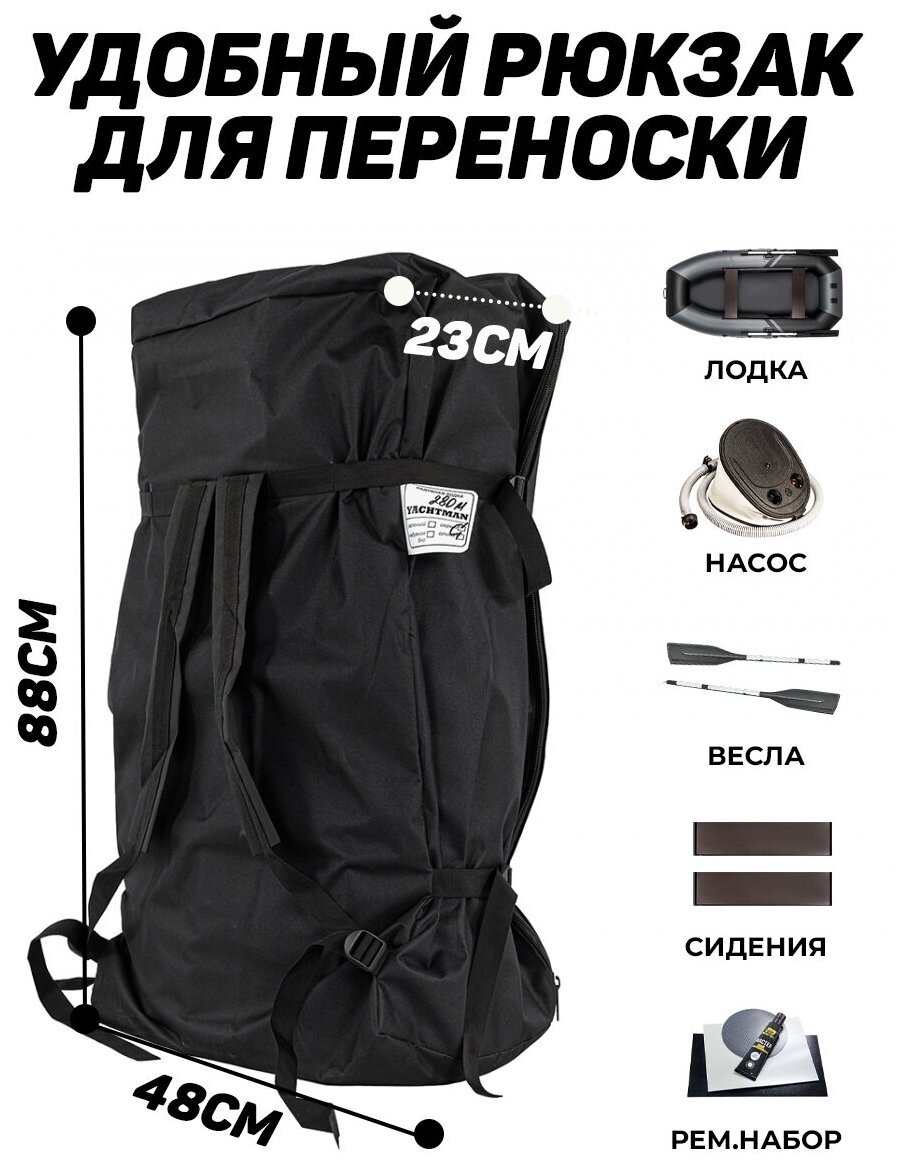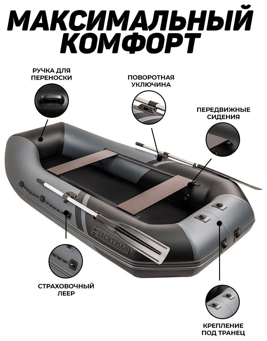 Надувные лодки Надувная лодка пвх YACHTMAN 280 M с усилением графит-черный
