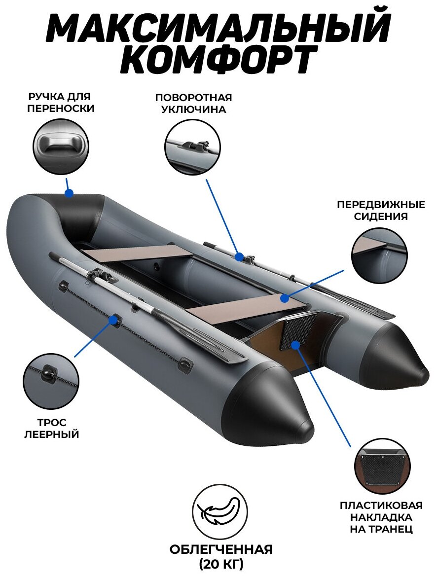 Надувные лодки Лодка пвх под мотор Поход 290 Т CLASSIC (Серый)