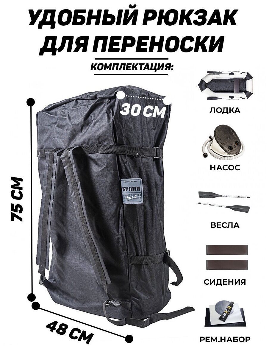 Надувная гребная лодка ПВХ БРОНЯ-220, для рыбалки, одноместная