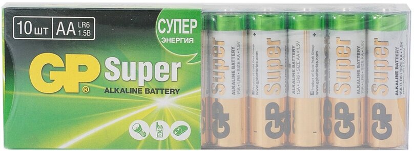 GP Алкалиновые батарейки Super Alkaline 15А АA - 10 шт. 15A5/5-2CR10