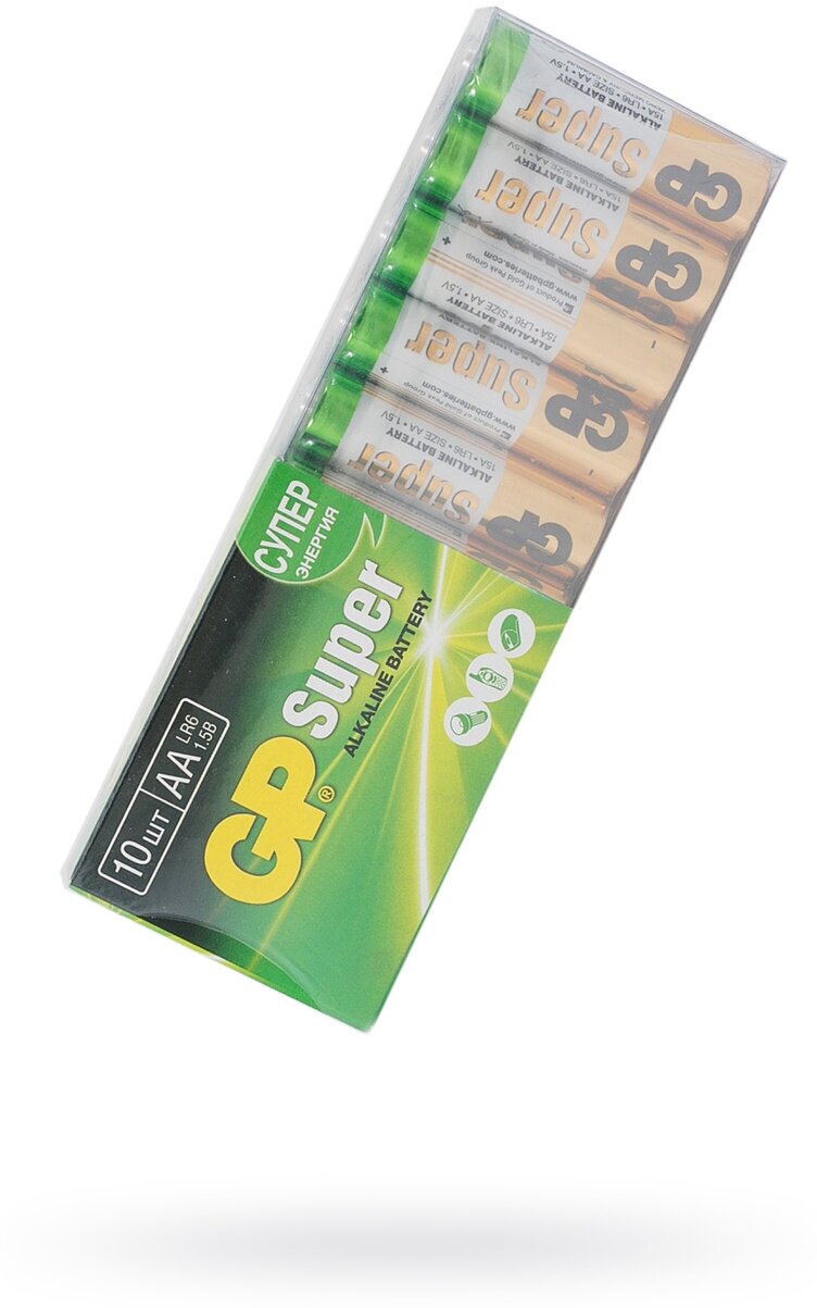 Батарейки GP Super, AA (LR6,15А), алкалиновые, пальчиковые, комплект 10 шт., в пленке, 15A-2CRB10, GP 15A-2CRB10