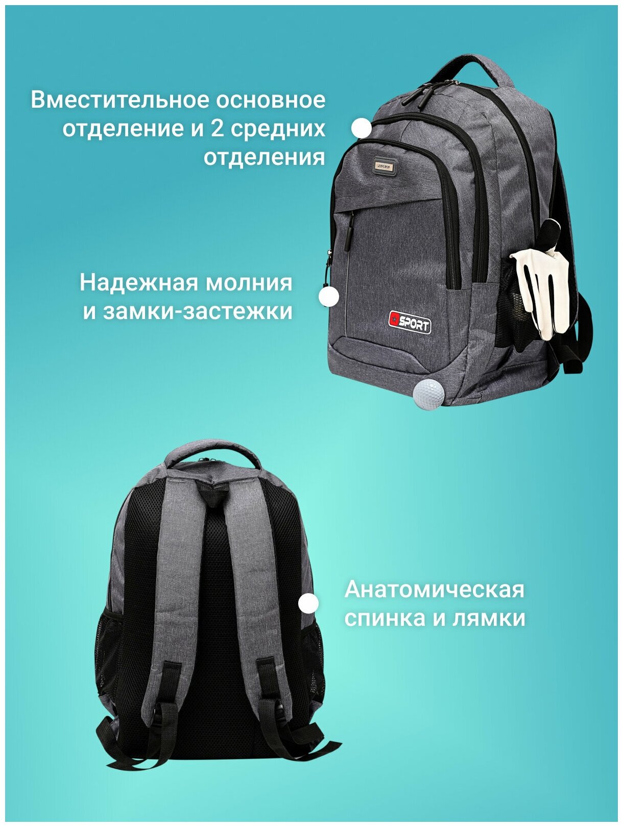 Рюкзаки Рюкзак мужской спортивный городской дорожный для путешествий унисекс SPORT BIG серый