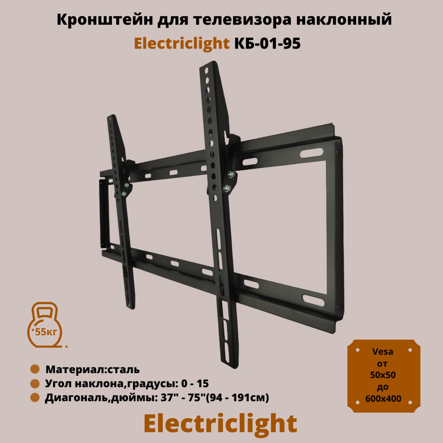 Кронштейн Electriclight КБ-01-95 черный 37"-75", 55 кг, 300x300-600x400, 25 мм, наклон 2 230 ₽ Подробнее