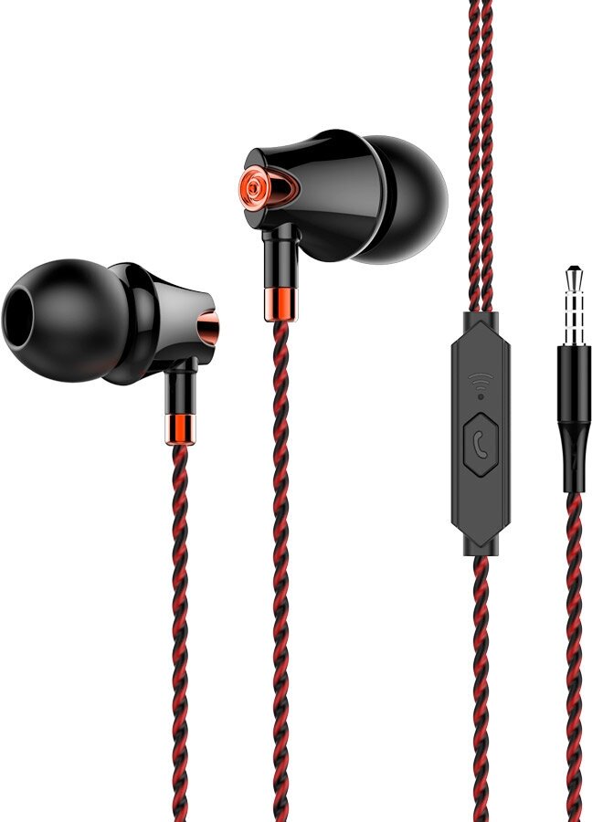 Наушники MORE CHOICE G26 проводные, вакуумные, 1,1м, черный/красный