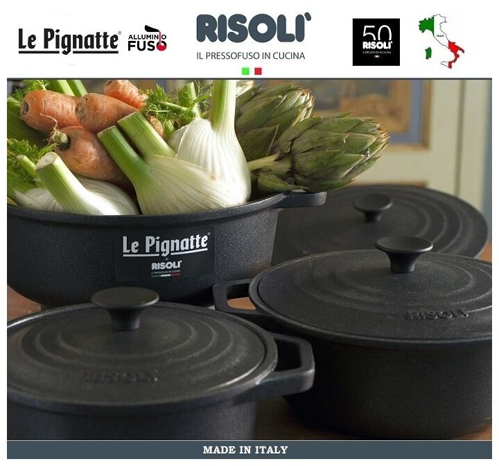 Кастрюля Кастрюля кухонная с крышкой Посуда на кухню Кухонные принадлежности Кастрюля для супа Кухонная утварь Risoli Le Pignatte, диаметр 24 см