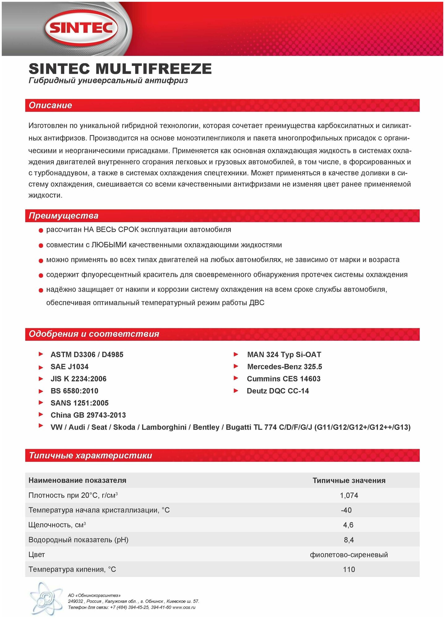 Антифриз Sintec Multifreeze (-40) Универсальный 1 Кг SINTEC арт. 800533 230 ₽ Подробнее