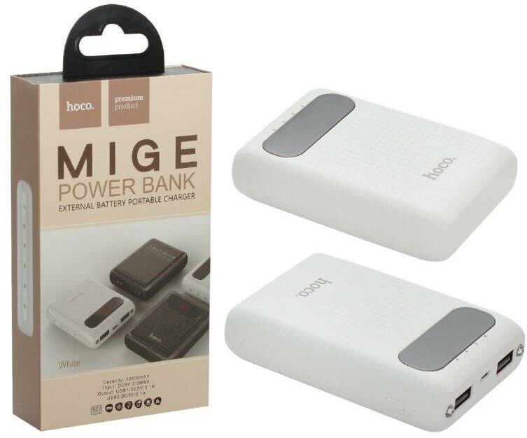 Лучшие цены. Внешний аккумулятор 10000мАч Hoco B20 - Белый Внешний аккумулятор Hoco B20 решит проблему не вовремя разрядившейся батареи у мобильного устройства. Аксессуар выполнен в классическом дизайне и довольно компактный – помещается в ладонь. Его удобно носить везде с собой в сумке или рюкзаке. Запаса энергии хватит на несколько зарядок смартфона. Два выходных порта помогут подзарядить два гаджета одновременно. Мощности встроенного фонарика хватит, чтобы осветить темное пространство салона автомобиля или подъезда. Магазины в вашем городе.