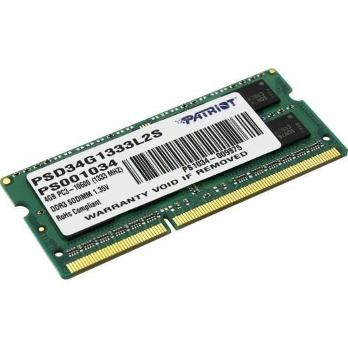 Лучшие цены. Тип товара: Память (модули, комплекты); Модель: PSD34G1333L2S; Тип оборудования: Память; Частота (MHz): DDR3 - 1333; Тип модуля: SO-DIMM; Объем одного модуля (ГБ): 4; Количество модулей в комплекте (шт): 1; Общий объем памяти (ГБ): 4; Пропускная способность (МБ/с): 10600. Магазины в вашем городе.
