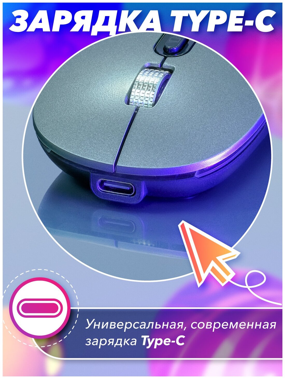 Мышки Мышь беспроводная М103, Bluetooth 5.1 + Nano USB, Зарядка Type-C Компьютерная мышка с RGB подсветкой, бесшумная мышка с Аккумулятором, цвет серый
