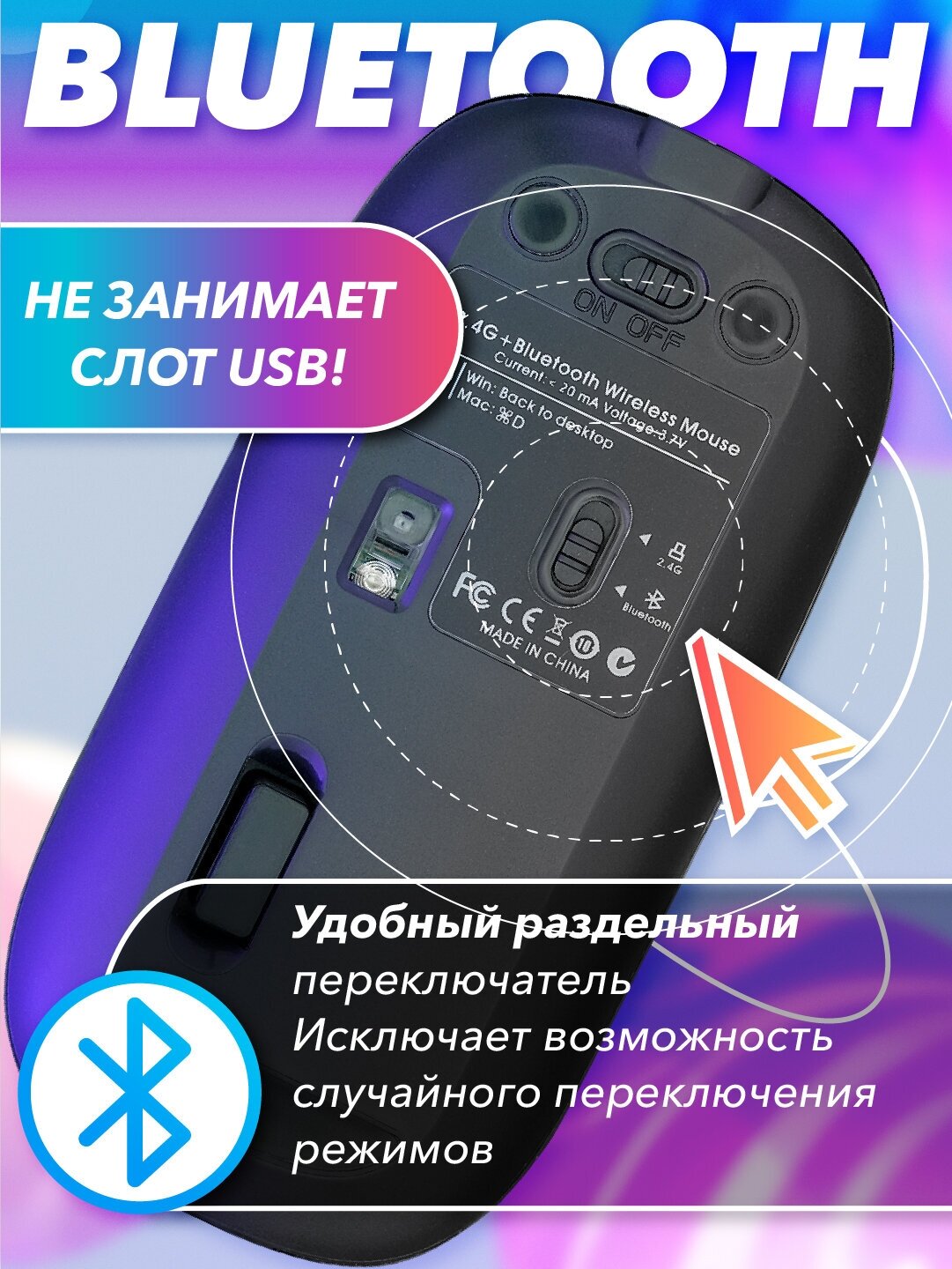 Мышь беспроводная М103, Bluetooth 5.1 + Nano USB, Зарядка Type-C Компьютерная мышка с RGB подсветкой, бесшумная мышка с Аккумулятором