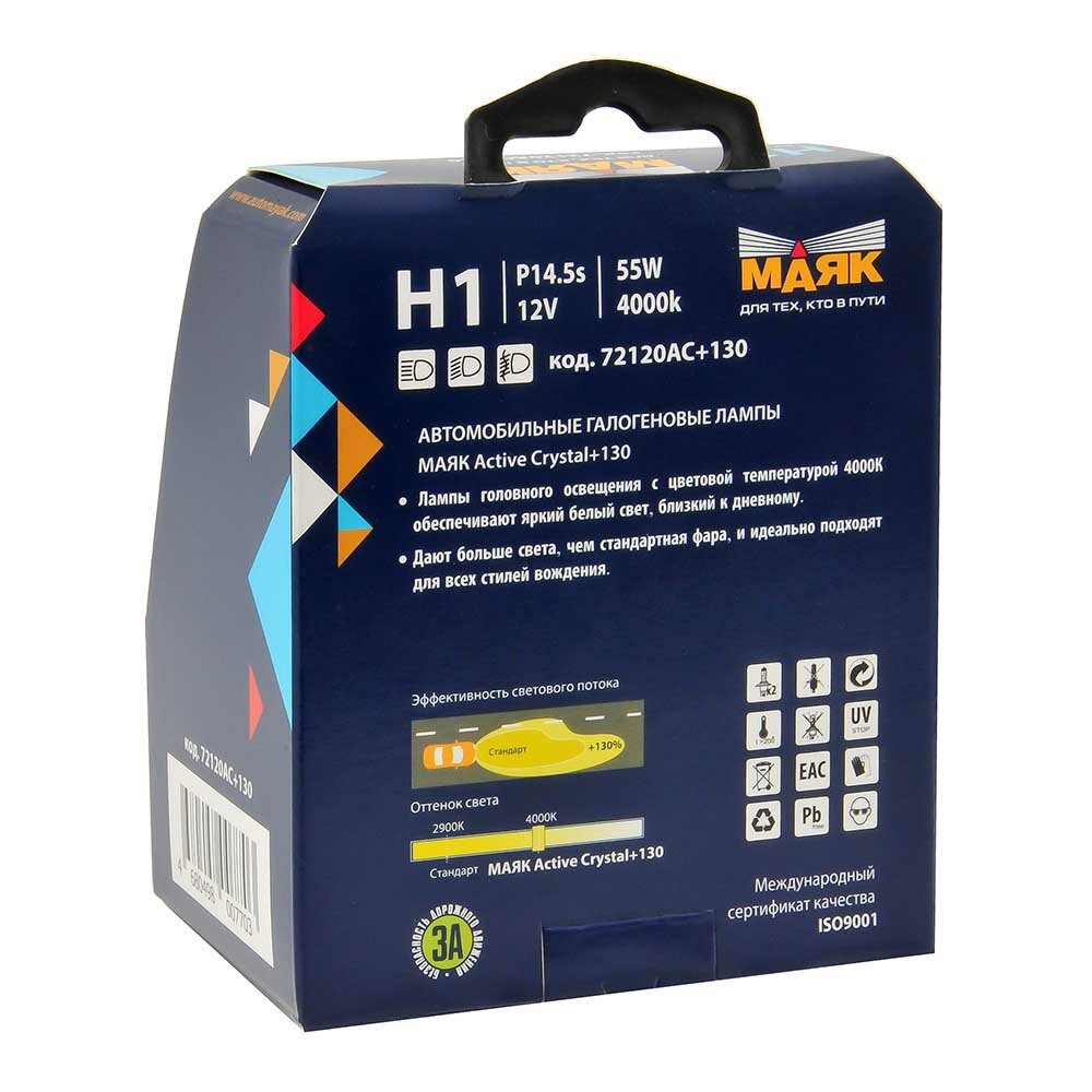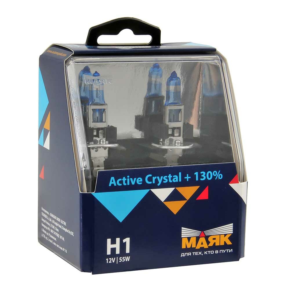 Лампа 12v H1 55w +130% P14,5s Маяк Active Crystal 2 Шт. Duobox 72120ac+130 Маяк арт. 72120AC+130