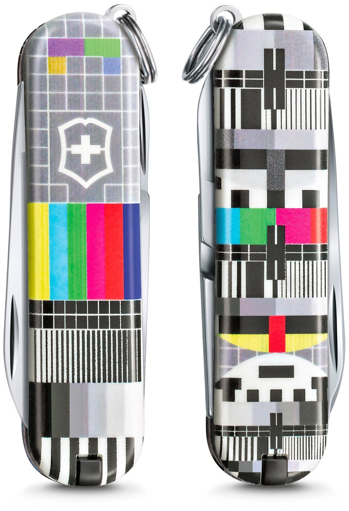 Лучшие цены. Нож-брелок VICTORINOX Classic "Retro TV", длина лезвия 4 см, 7 функций, лезвие и инструменты из нержавеющей стали, рукоять из пластика Cellidor Victorinox представила новую лимитированную серию миниатюрных складных ножей. В 2021 году новая тема — «Patterns of the World», которая включает в себя 10 оригинальных дизайнов от художников со всего света. Каждый нож выпущен ограниченным тиражом и будет радовать уникальной необычной расцветкой и, как всегда, широким отличным функционалом. Магазины в вашем городе.
